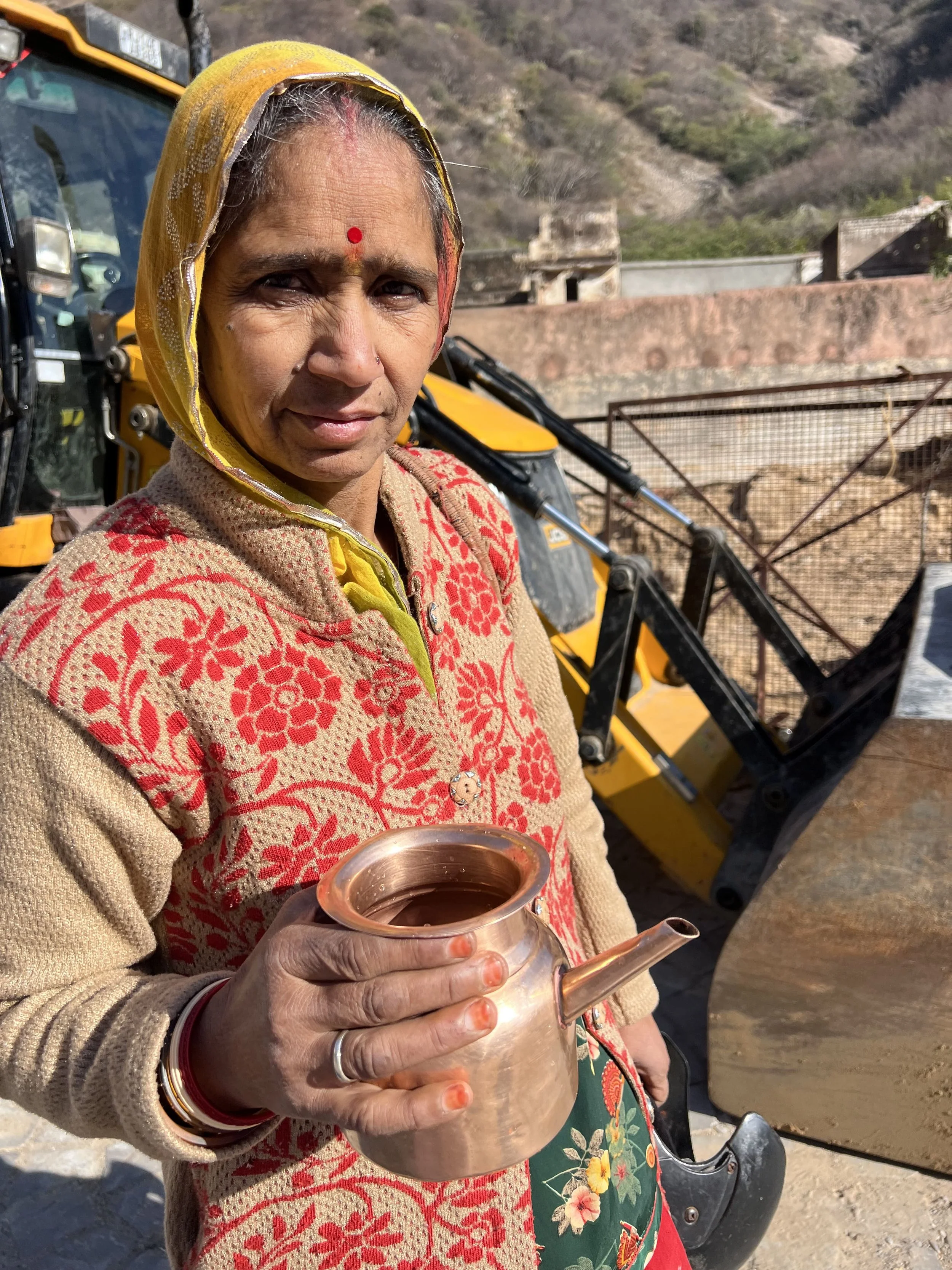 Regresamos el auto y emprendimos un recorrido de cerca de una hora hasta Abhaneri, donde se encuentra el pozo de agua escalonado Chand Baori. Fue quizás el stepwell más llamativo que vimos durante nuestro viaje a India. Muy bien mantenido y vigilado, es extraordinariamente grande. En el estacionamiento de los autos para turistas, las caras de los locales pueblerinos y la venta de sus exóticas comidas también fue un atractivo, tanto como ver cómo circulaban familias enteras en acoplados de un tractor yendo -según nos indicó nuestro conductor- a alguna celebración por las ropas que llevaban puestas. En esos caminos más rurales nuestra atención no paraba de acrecentarse con escenas de la vida cotidiana local.