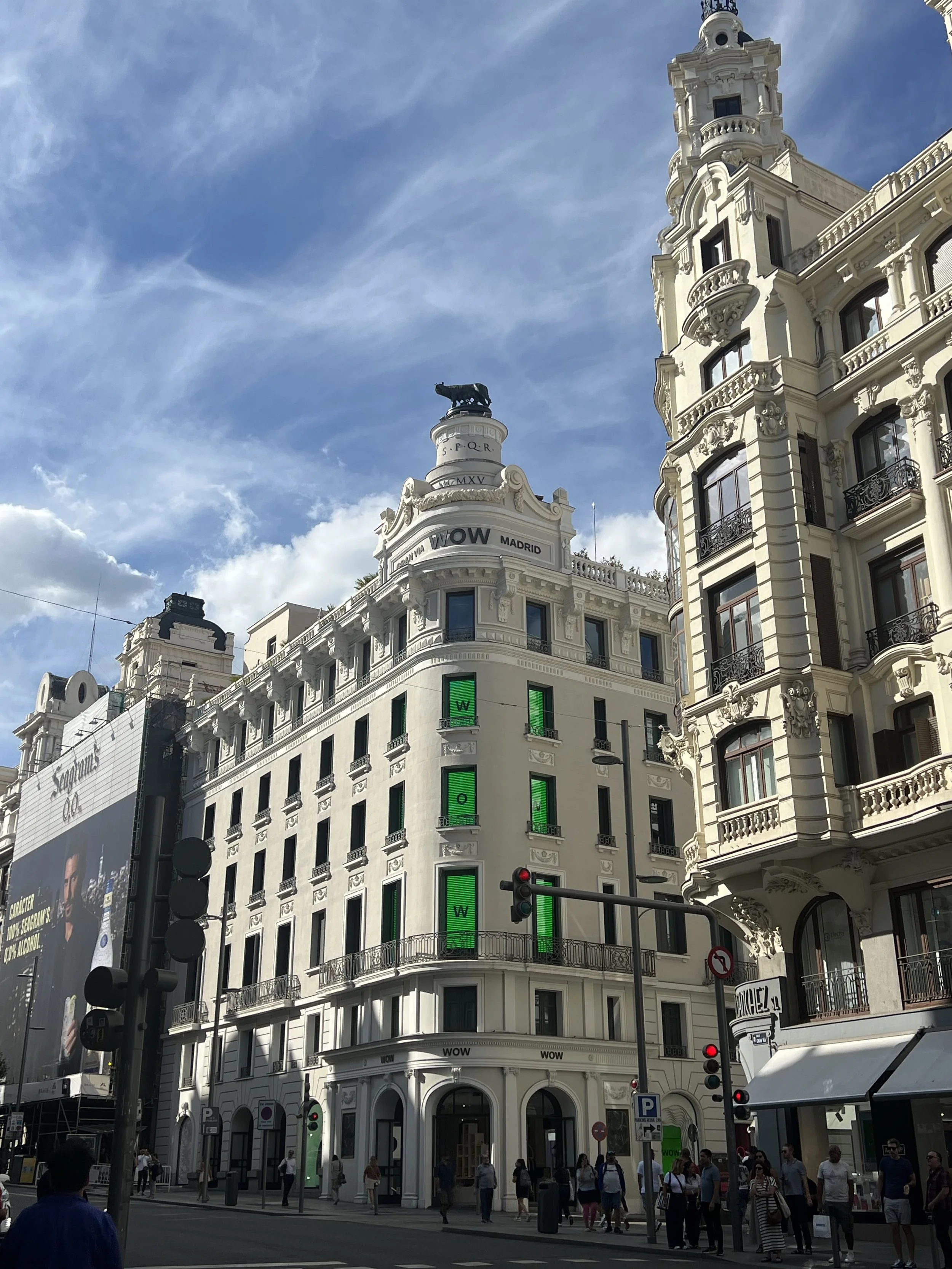 Afterwards, we visited the Gran Vía 15 Museum, a playful space, which proposes a different experience for exploring contemporary art. With an immersive touch, it was developed by artist Okuda San Miguel. He started his activity with urban art, using color and its stridency. In addition, the museum operates in a building from 1921, where the jewelry store of Lopez and Fernandez, jewelers of the Royal House, which was known as Aldao, used to operate. So there, in the vaults, the artist's work is preserved and exhibited.